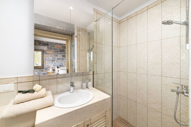 Luxurious Villa (finished in autumn 2018) located secluded from its smaller twin Villa Falcon on a 6500 m2 gated plot of beautiful wild cretan landscape with a large 12m x 5m white marble surrounded solar heated private Infinity Pool with breathtaking seaview AND YOUR private fenced and unshared beach area with your private reserved beach chairs (logically also not shared) and direct access to Plaka beach and the sea 5 minutes by car downhill from your villa.